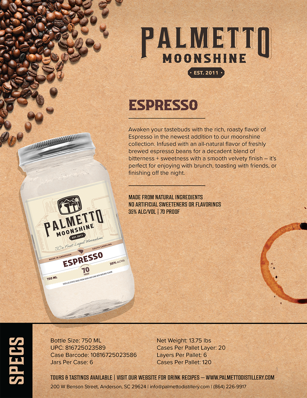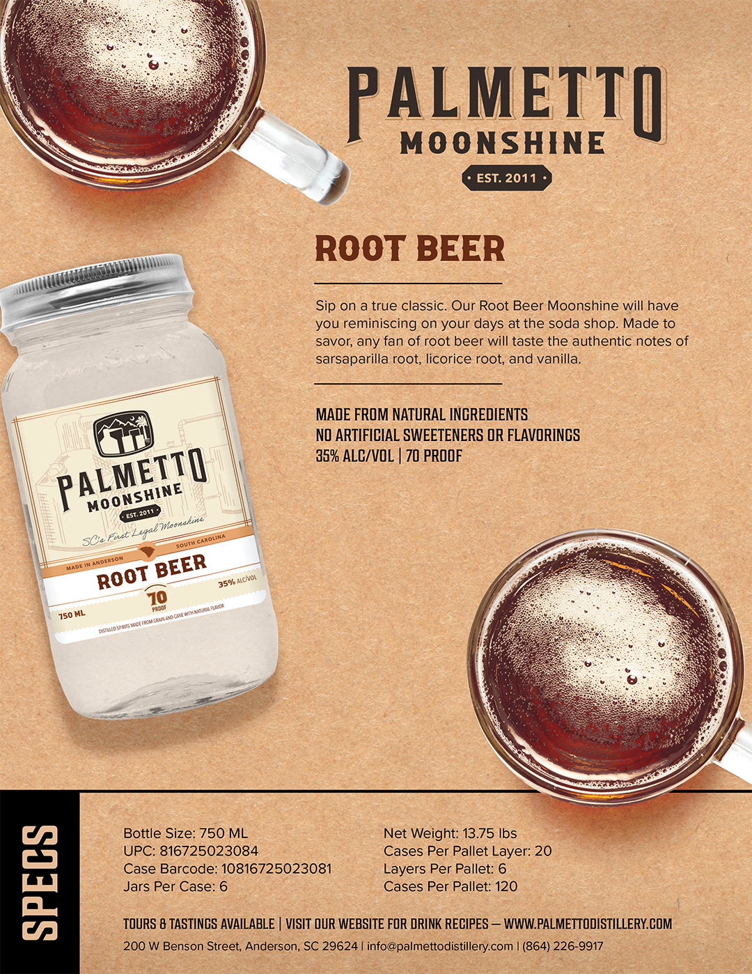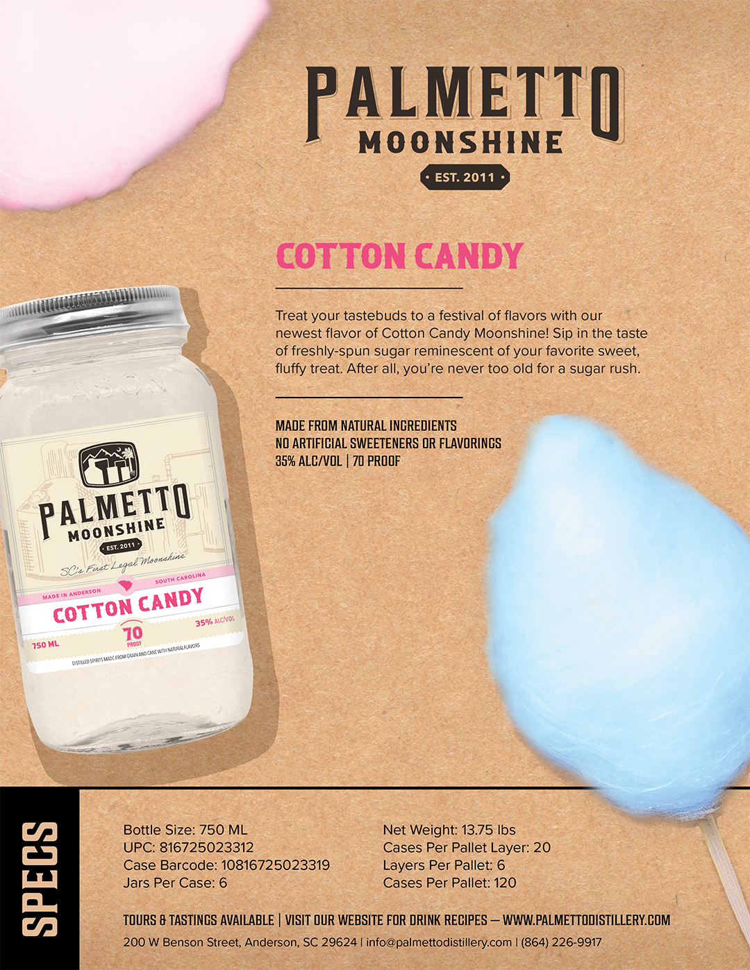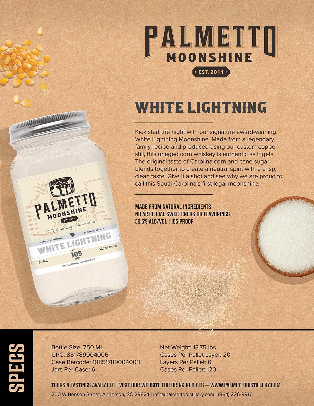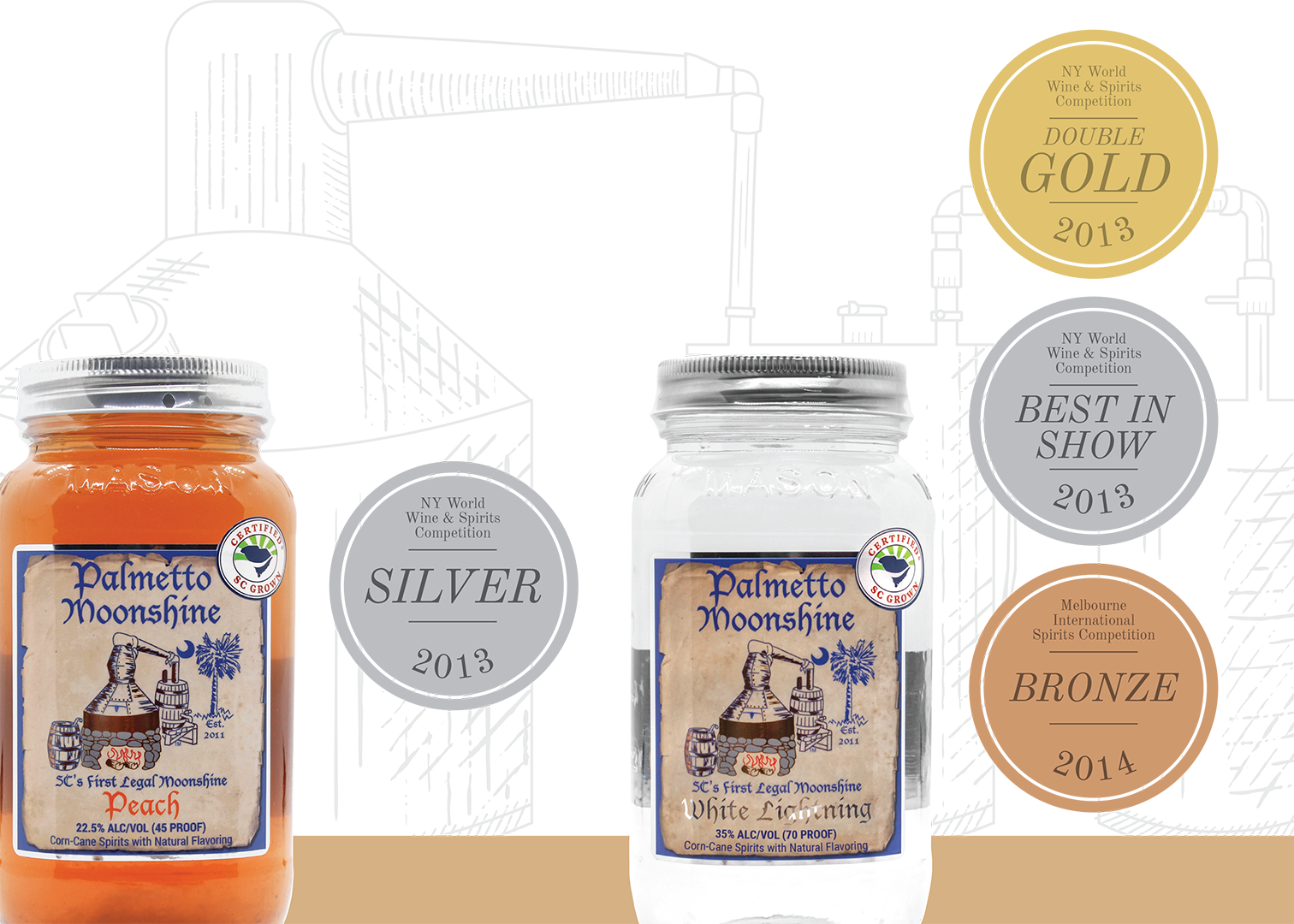 Palmetto Distillery is a micro-distillery located in the heart of downtown Anderson, SC. Our award-winning collection of spirits includes craft moonshine, whiskey, ready-to-drink cocktails, and sippin' cream. Browse our selection, find your flavor and pass the jar!